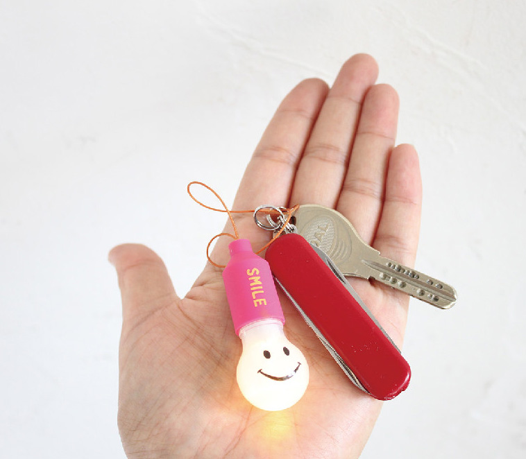 親子や友達でシェアしてスマイルでつながり感を共有しよう。お父さんは鍵と一緒、お母さんはちょっとお出かけバッグに、子どもはベッドサイドに吊り下げたりして使えば、仲のいい親子の証。